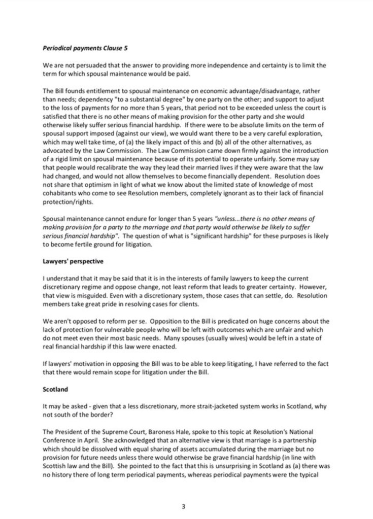 With the greatest of respect, the Divorce (Financial Provision) Bill is too simplistic, lacking in an evidential basis for the stark outcomes it would lead to and highly likely to lead to huge unfairness if ever it were enacted. It is for that reason, and not reasons of protectionism, that all working in this area – lawyers, judges and even those who have been through divorce – must oppose the Bill vocally and campaign for the work suggested by the Law Commission 6 years ago to be started, finally. Who knows, BoJo may soon have ‘Brexit done’ and with what looks like the first period of political calm since the Family Justice Review started in 2010, and a government with a working majority, there may be time properly to focus on this. But please – let’s make sure that the focus is the right one and that any reform in this area is on a solid evidential basis. And let’s get no fault divorce and cohabitation reform over the line first.